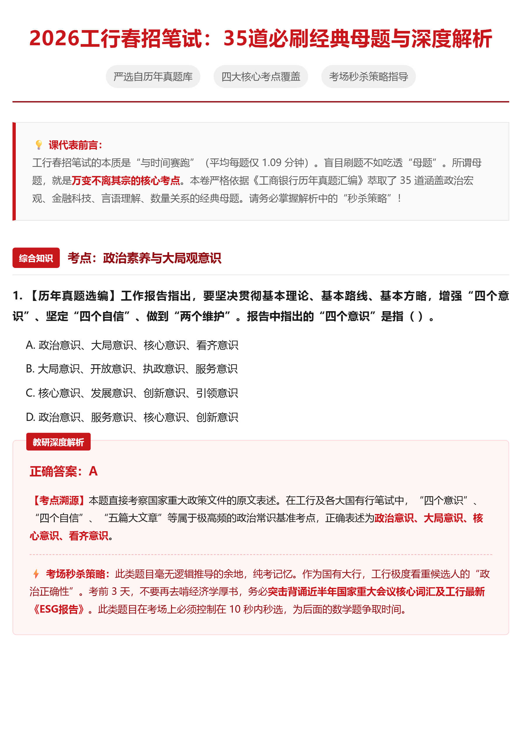 2026工行春招笔试:35道必刷经典母题与深度解析!前10道母题。