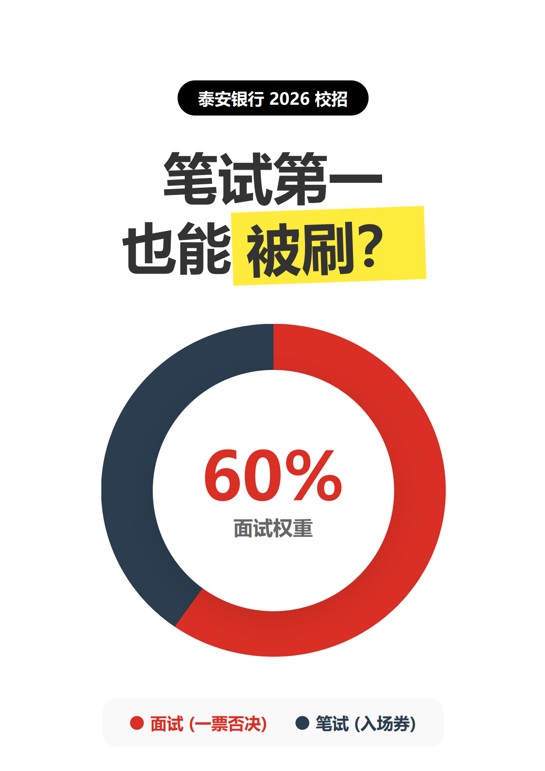 刚看到泰安银行2026校招这个面试规则的时候,真的替大家捏了一把汗。😓 大家先看图,官方公告里这几个字真的不是开玩笑的——“面试占比60%” 且 “低于60分直接淘汰”。